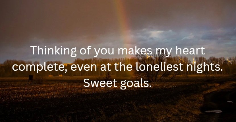 Thinking of you makes my heart complete, even at the loneliest nights. Sweet goals.